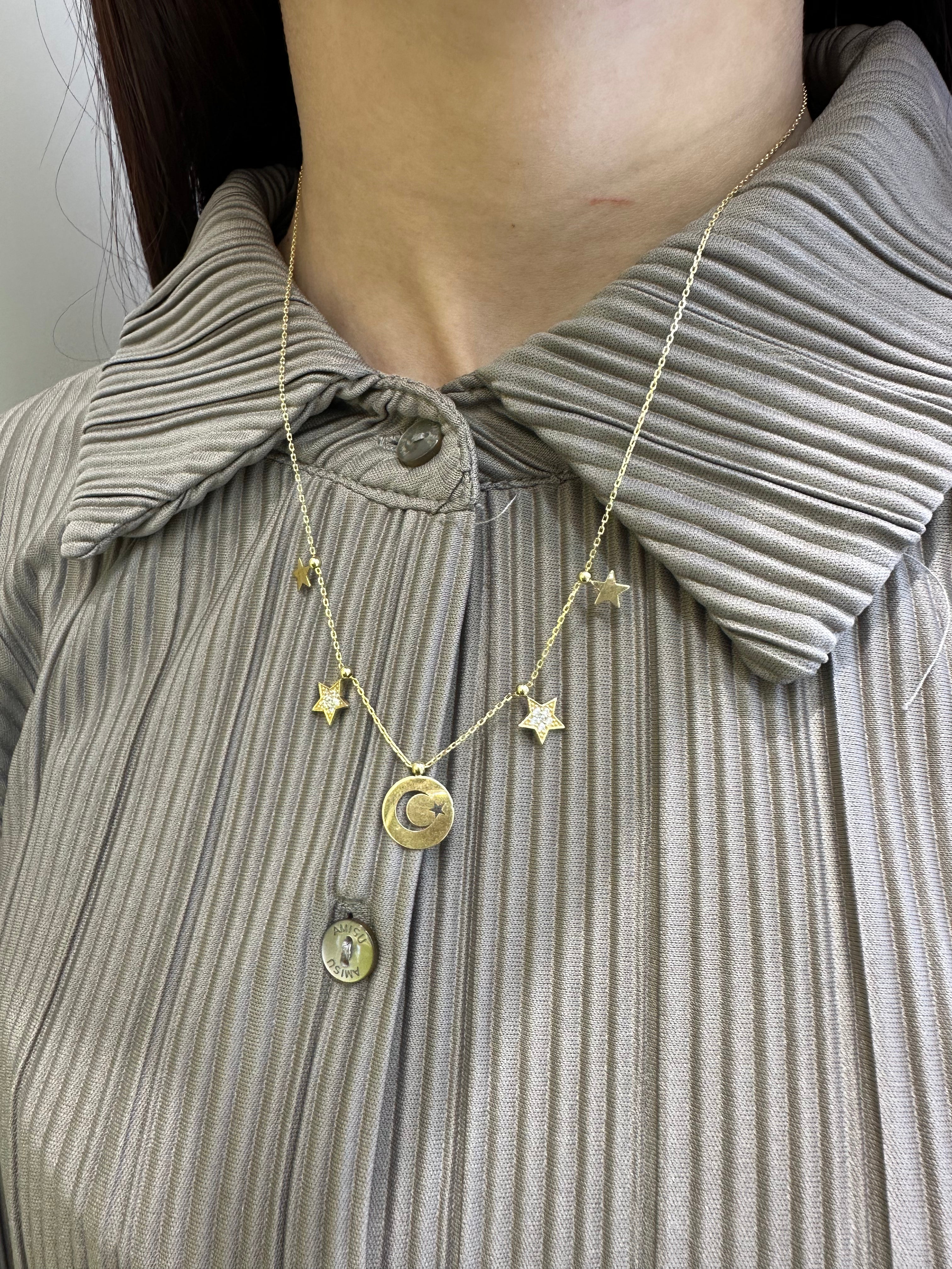 Unsere bezaubernde Sternen-Halskette mit zartem Türkiye-Anhänger aus 14 Karat Gold bringt deinen Stil zum Strahlen. Ein himmlischer Akzent für jedes Outfit!