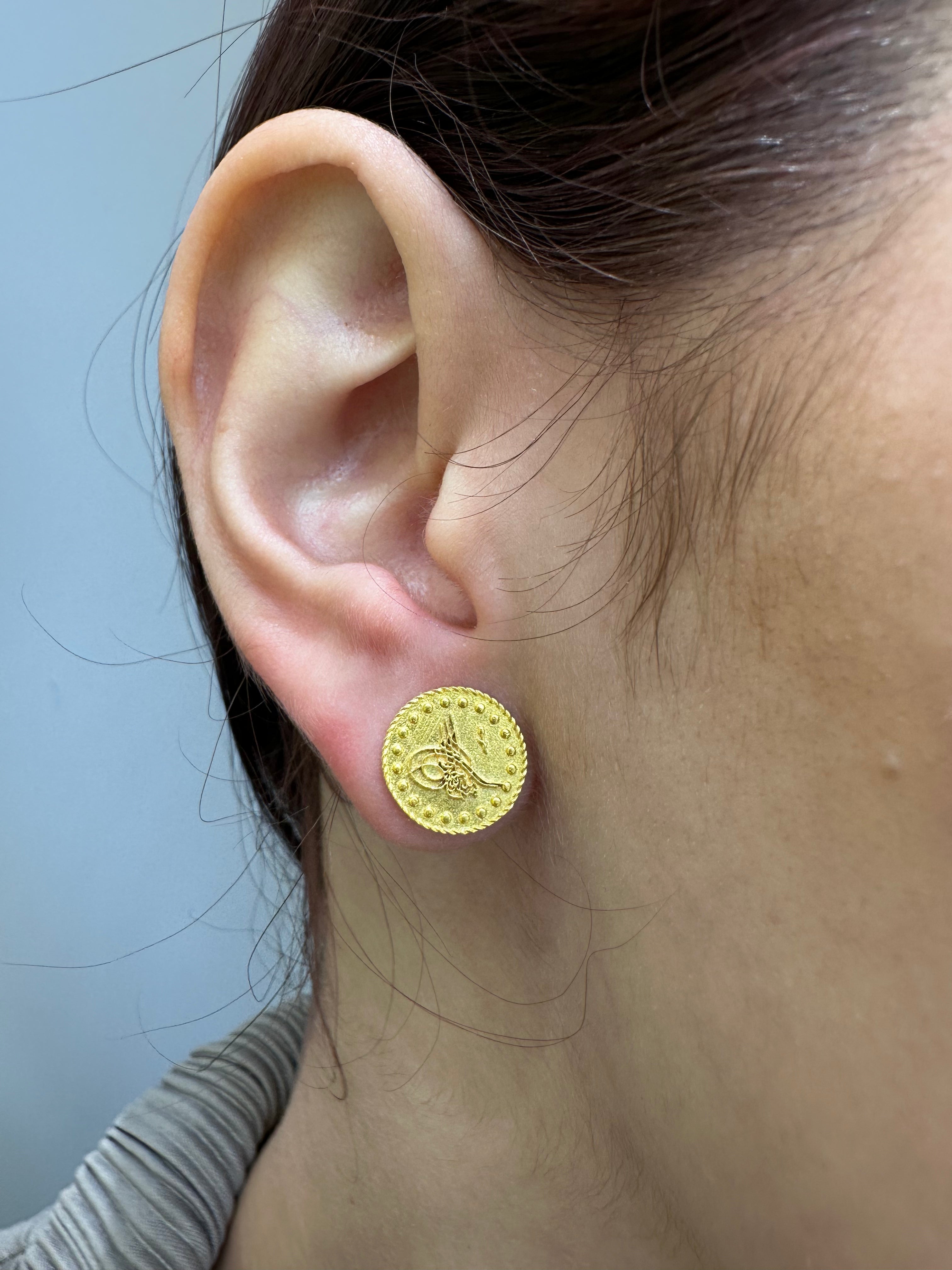 Ein Klassiker in einem modernen Stil mit unserer beliebten 22k Farbigen Reşat baskı Ohrringe liegst du voll im Trend. Aus 14 Karat Gelbgold hergestellt, sind diese Ohrringe perfekt für den Alltag.