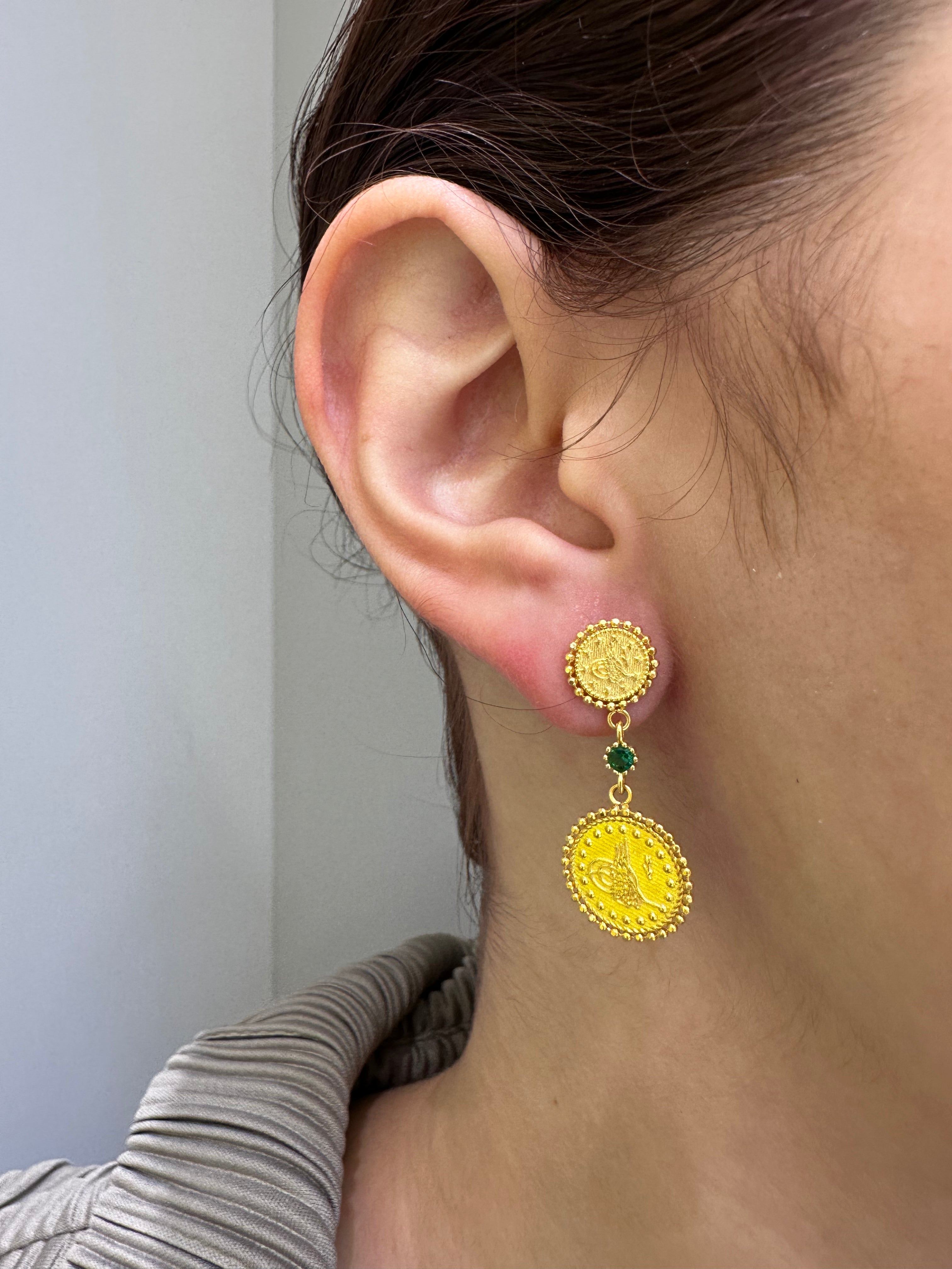 Ein Klassiker in einem modernen Stil mit unserer beliebten 22k Farbigen Dobble Reşat baskı Ohrringe mit grünem Stein liegst du voll im Trend. Aus 14 Karat hergestellt, sind diese Ohrringe perfekt für den Alltag.