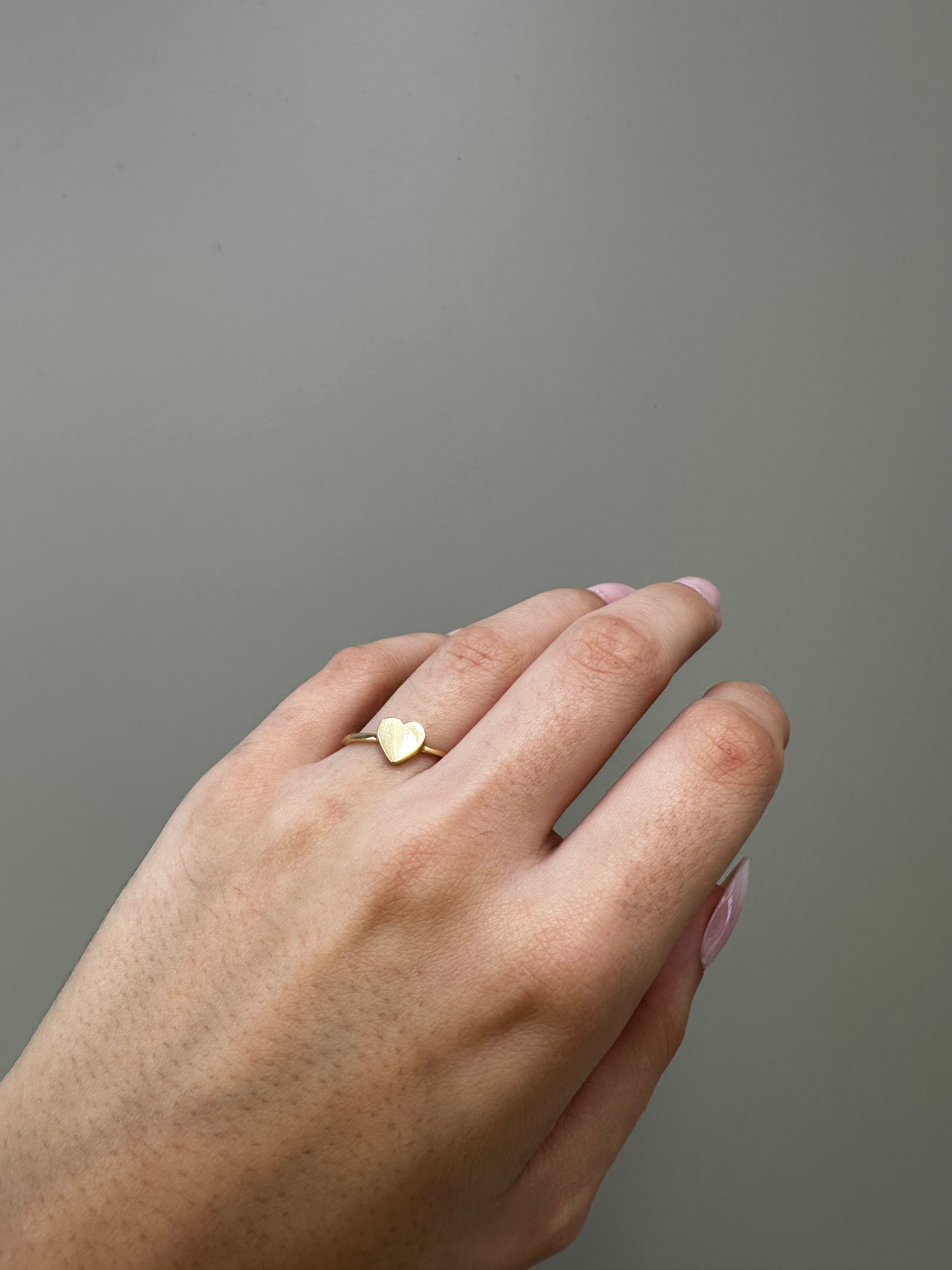 Ein eleganter Herz Ring, der mit seinem minimalistischen Design jedes Outfit veredelt. Der zarte Goldschimmer verleiht ihm einen edlen Charakter – perfekt für jeden Anlass.