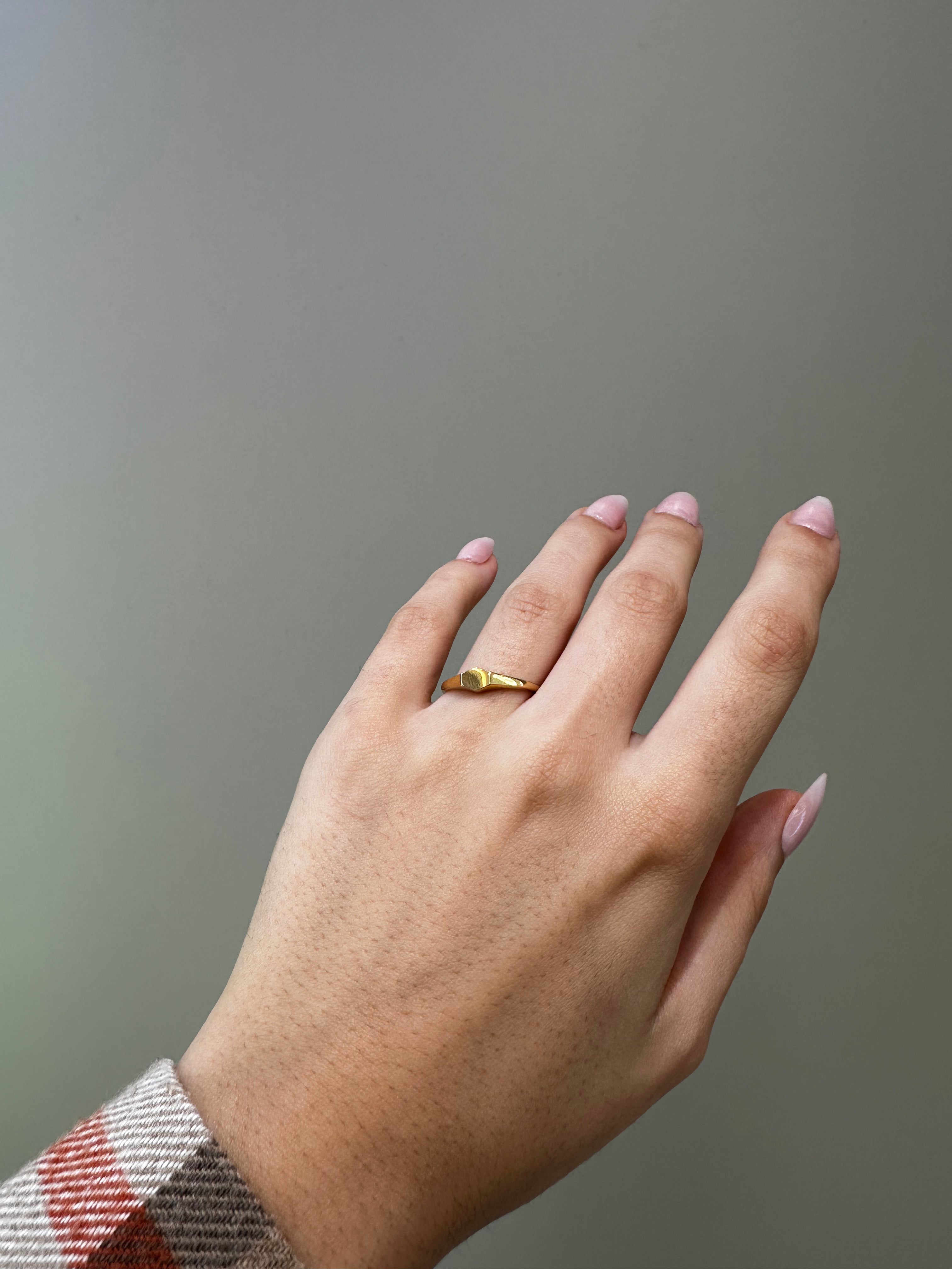 Ein eleganter Hexagon Ring, der mit seinem minimalistischen Design jedes Outfit veredelt. Der zarte Goldschimmer verleiht ihm einen edlen Charakter – perfekt für jeden Anlass.