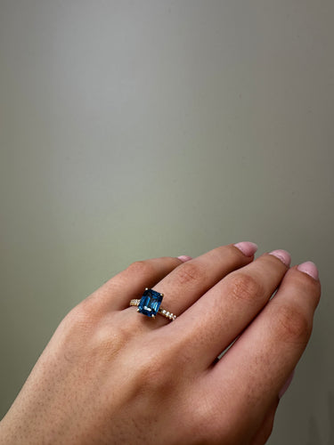Ein eleganter Ring mit blauem Stein, der mit seinem minimalistischen Design jedes Outfit veredelt. Der zarte Goldschimmer verleiht ihm einen edlen Charakter – perfekt für jeden Anlass.