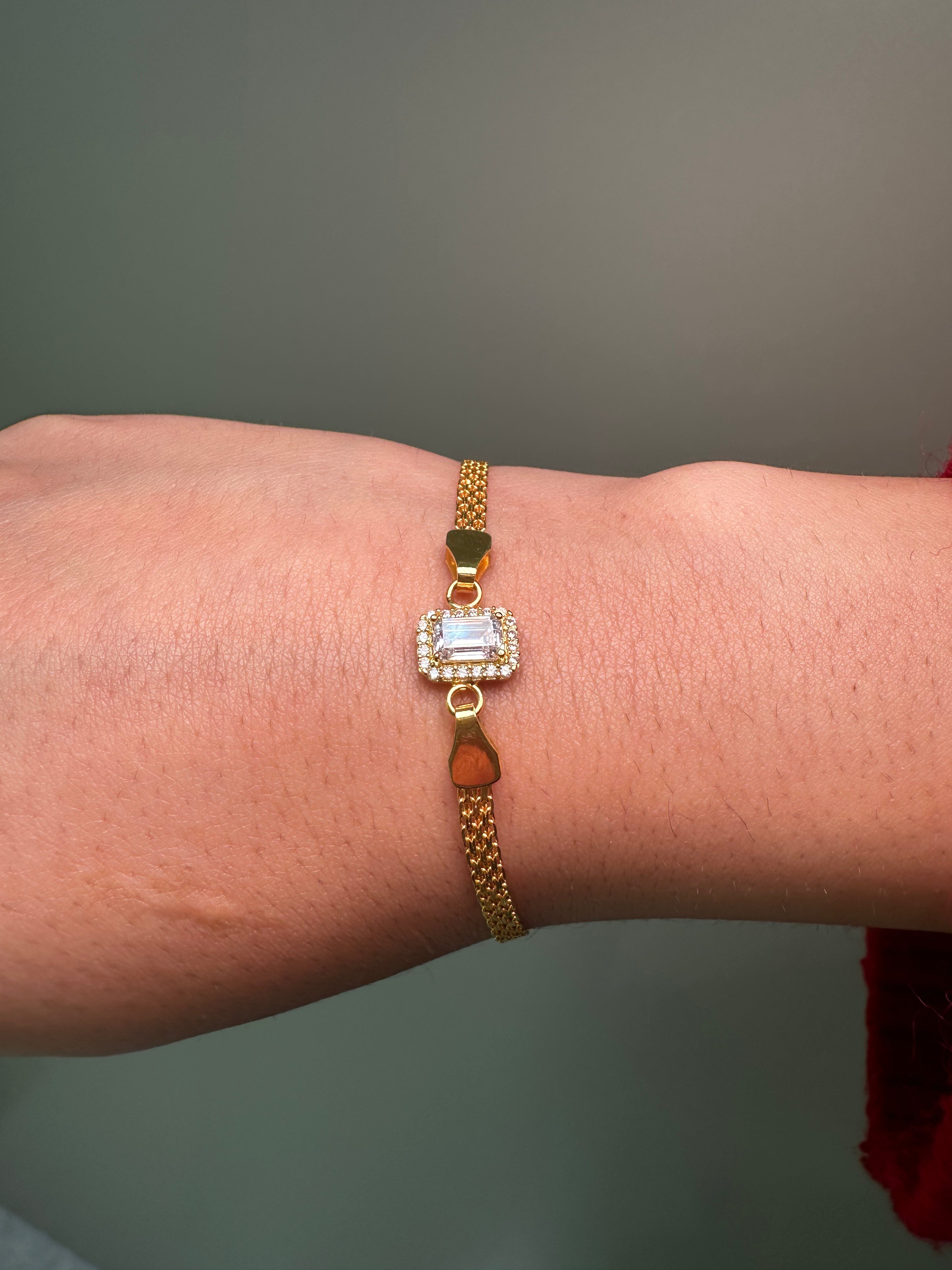 Ein elegantes Baget Zirkonia Armband, das mit seinem minimalistischen Design jedes Outfit veredelt. Das feine Goldschimmern sorgt für einen edlen Look – perfekt für jeden Anlass. Es eignet sich hervorragend als Geschenk oder aber du machst dir selbst eine Freude!